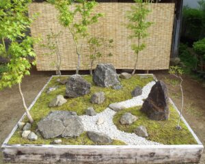 その石で、禅の庭を作ってみました。(サイズ2.4m×2.4m)