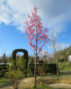 陽光桜「名の通り、庭を明るくする花が素敵。 苗木から育てて約12年、剪定し続けて木姿を作ってきた。ようやく花見できる木になってきたなぁ。立ち姿が美しいじゃないですか! 縦に伸びるスマートな木姿が良く、庭向き。 物語のあるサクラなんですよ。興味ある方はお調べ下さい。」2025.4