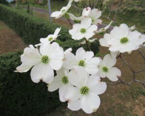 ハナミズキ「花が可愛らしい春の定番! 目の高さで咲かせると花の形が見えて良い。2階から見るのも良いのだろう。」2025.4