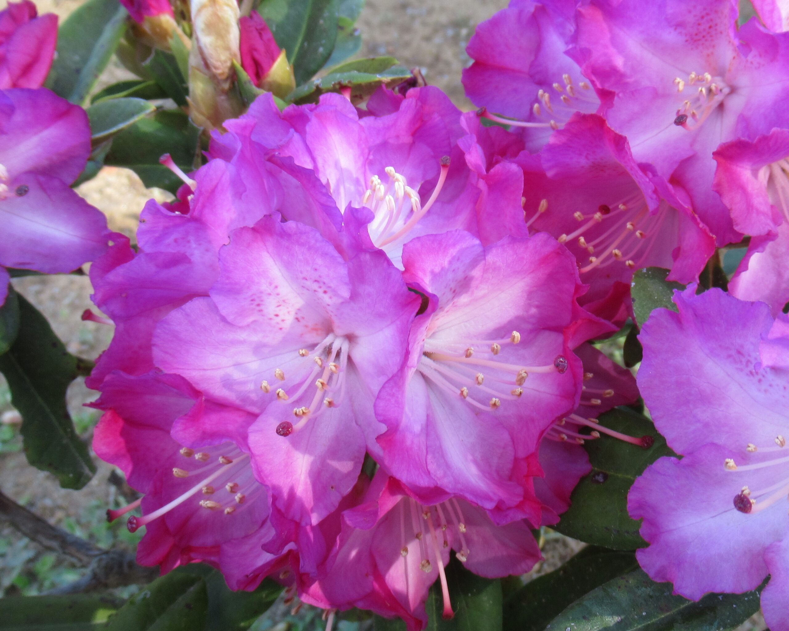 西洋シャクナゲ・品種不明「めいっぱい咲くから、つい応援したくなる。 花色もいいですね。」2025.4