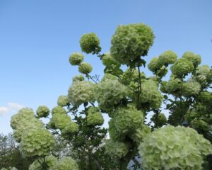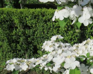 ビバーナム・ステリーレ「アジサイのような白花。緑から白へ、花色の変化と色味がお洒落。」2025.4