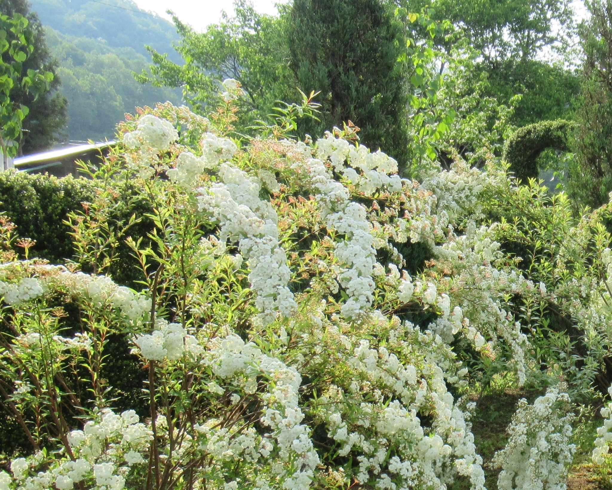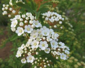 一重咲きコデマリ「あ、咲いた。 一番花を愛でる。 シャキッとした品の良い小花が良く、しなやかに枝垂れた枝に咲く姿が素敵。」2025.5