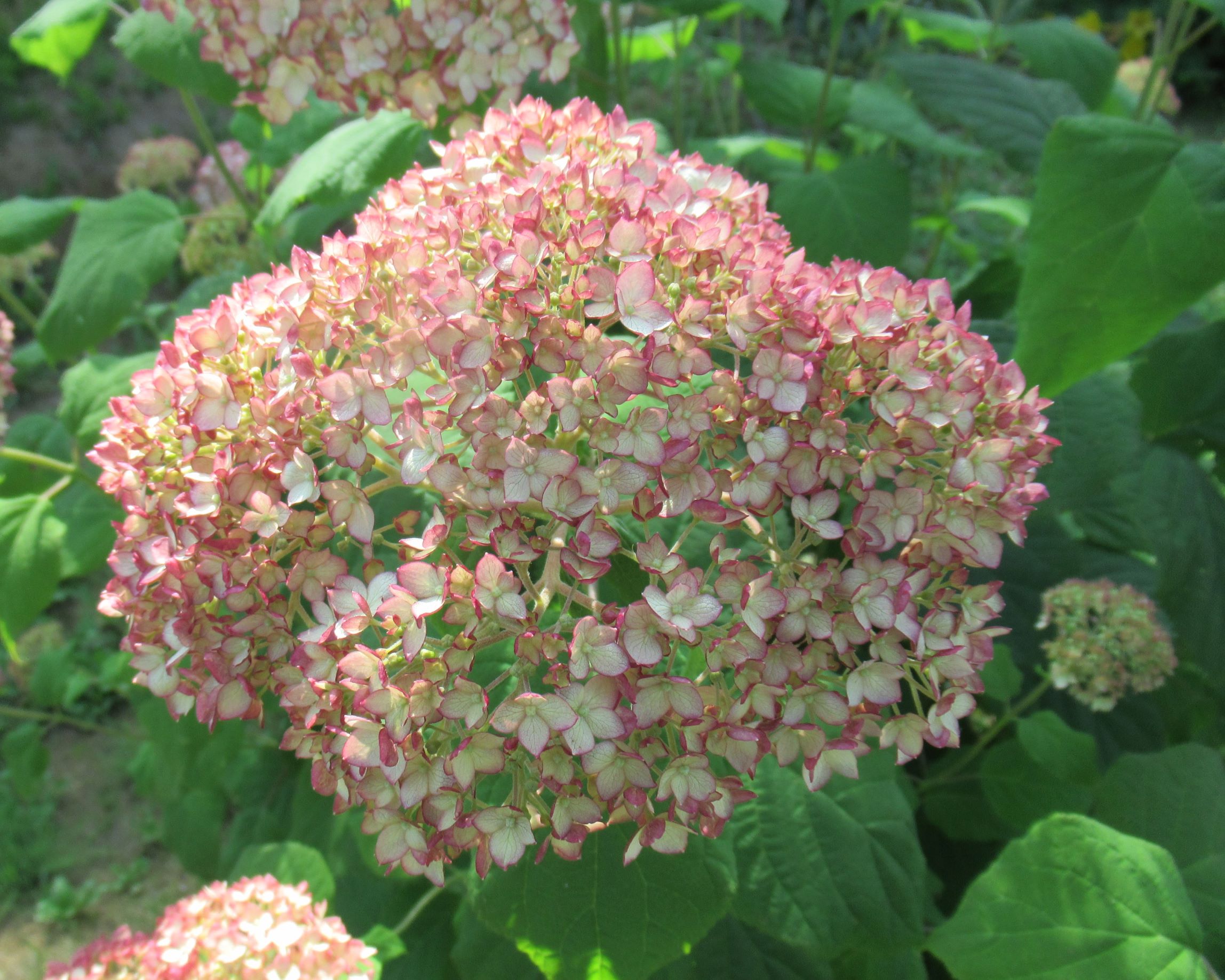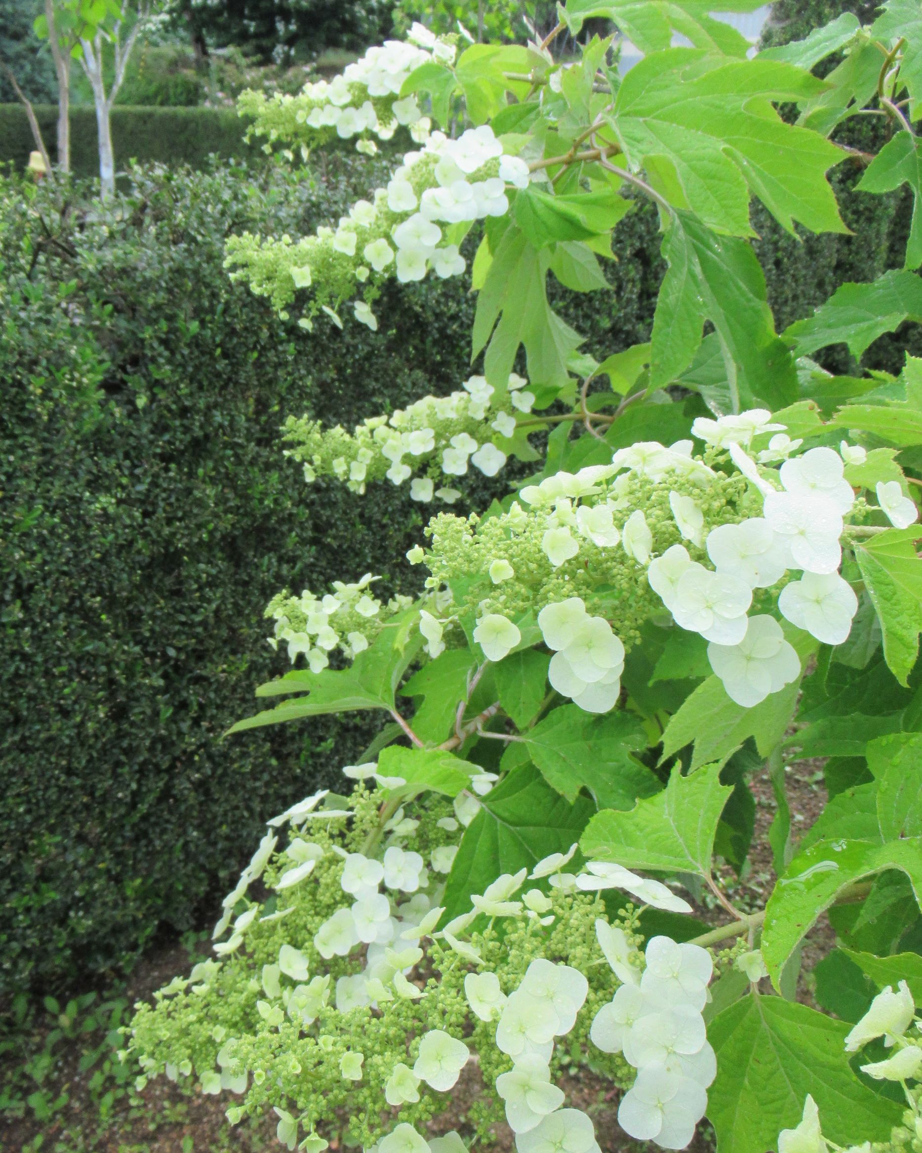 カシワバアジサイ「日当たりが良過ぎると花が綺麗に咲かない。日よけに植えたモクレンの成長を待つ。」