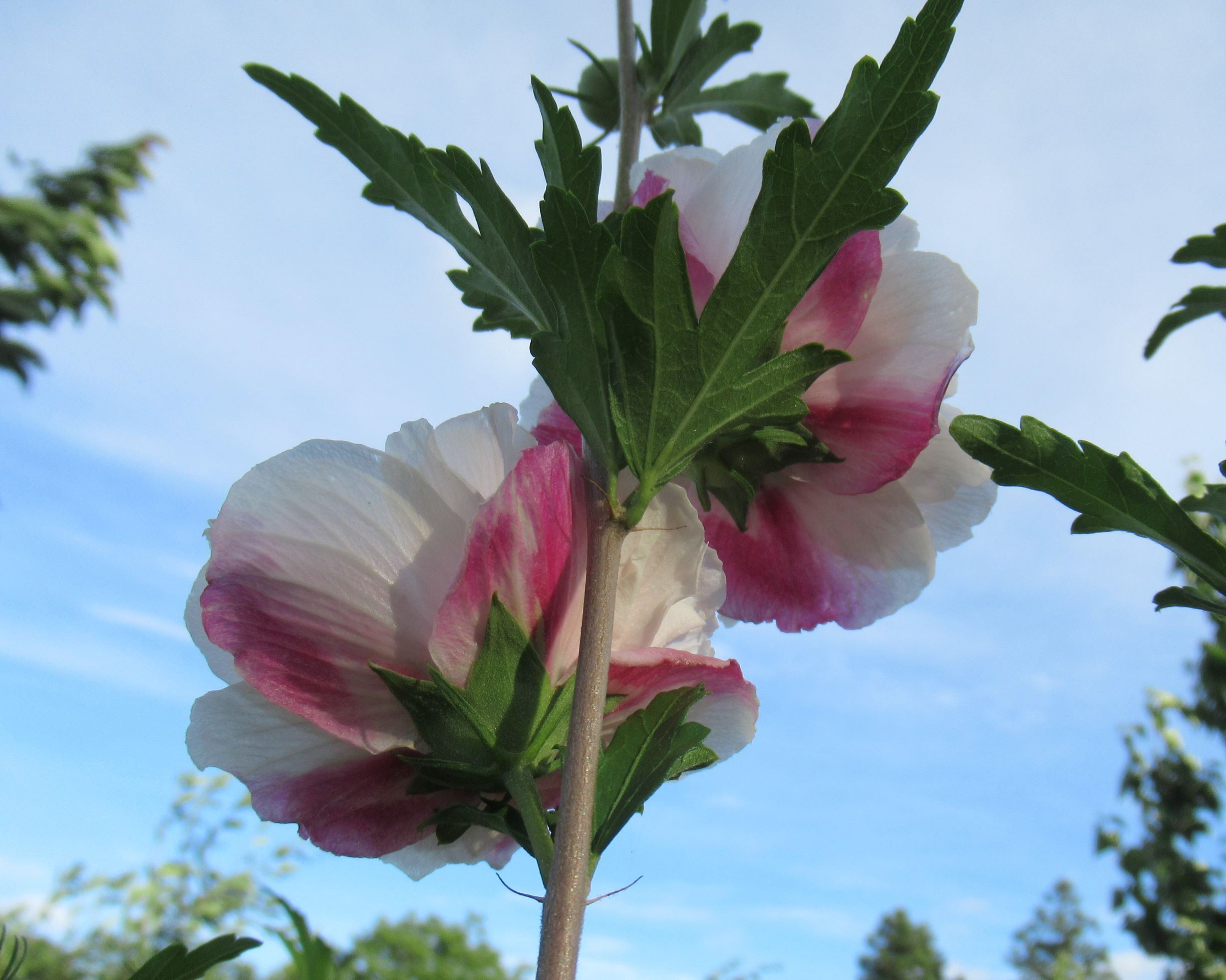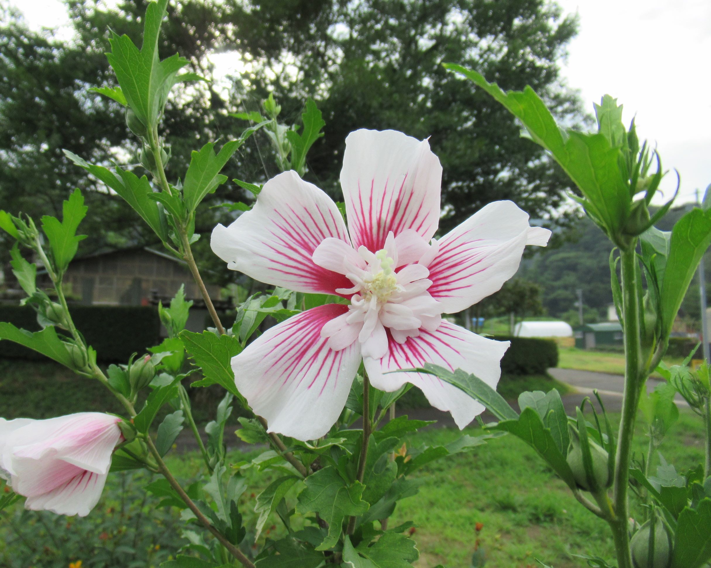 ムクゲ・スターバーストシフォン「花の説明は置いといて。 数年前に園芸店で出会った花。店員さんの顔を思い出す。勧めて頂きありがとうございます。」2025.7