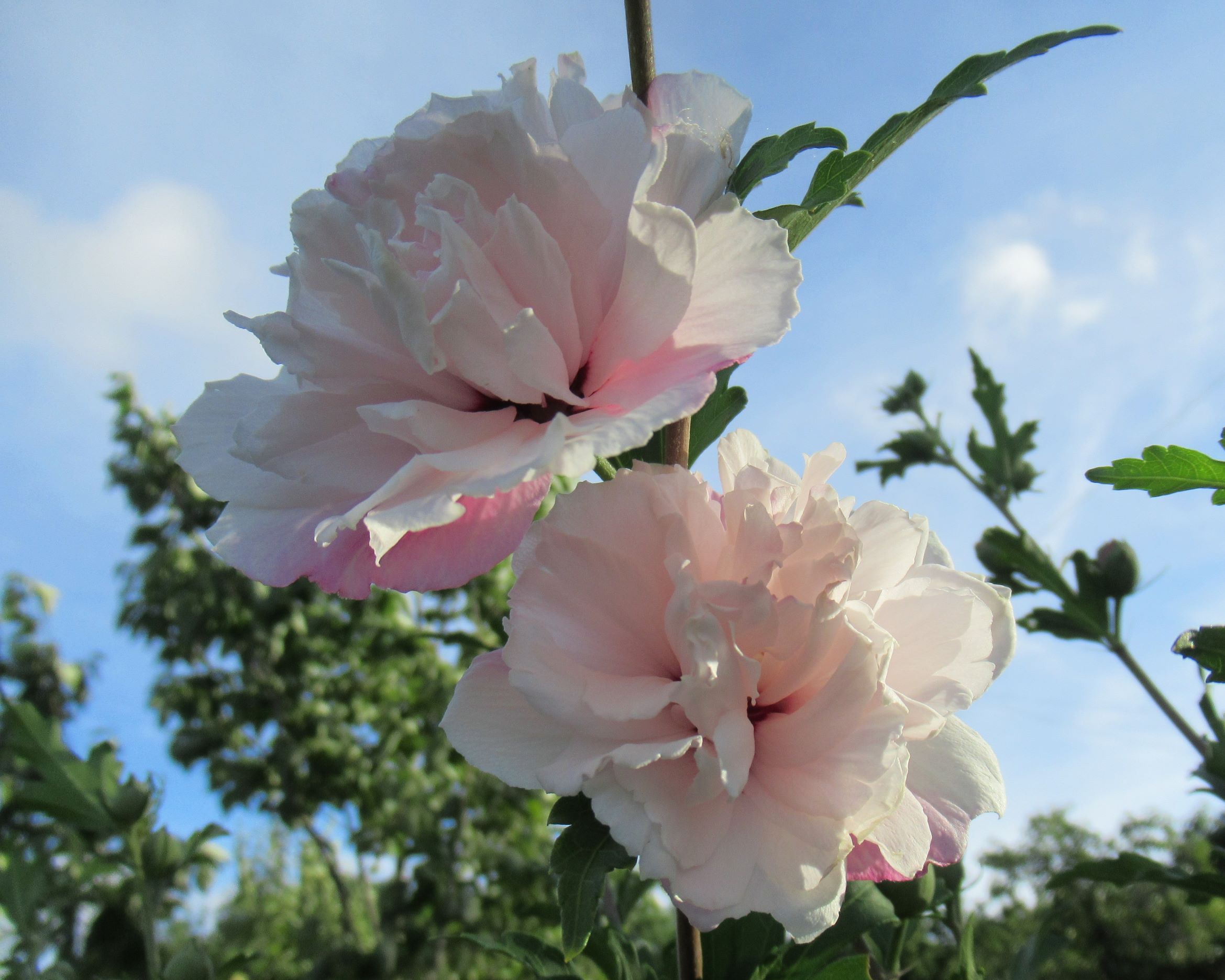 ムクゲ・フレンチキャバレーパステル「フリフリ花びらが女性的。 つい二度見してしまう花は、まるでシャクヤクのよう。」2025.7