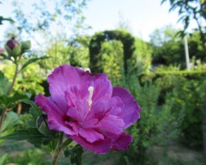 ムクゲ・紫玉「この庭では、一番遅くに咲く。 バラのような花ですね。」2025.8