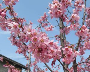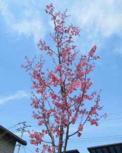 オカメ桜「花は小振りですが、凛とした濃いピンクが庭を明るくする早咲きの桜です。」2025.3