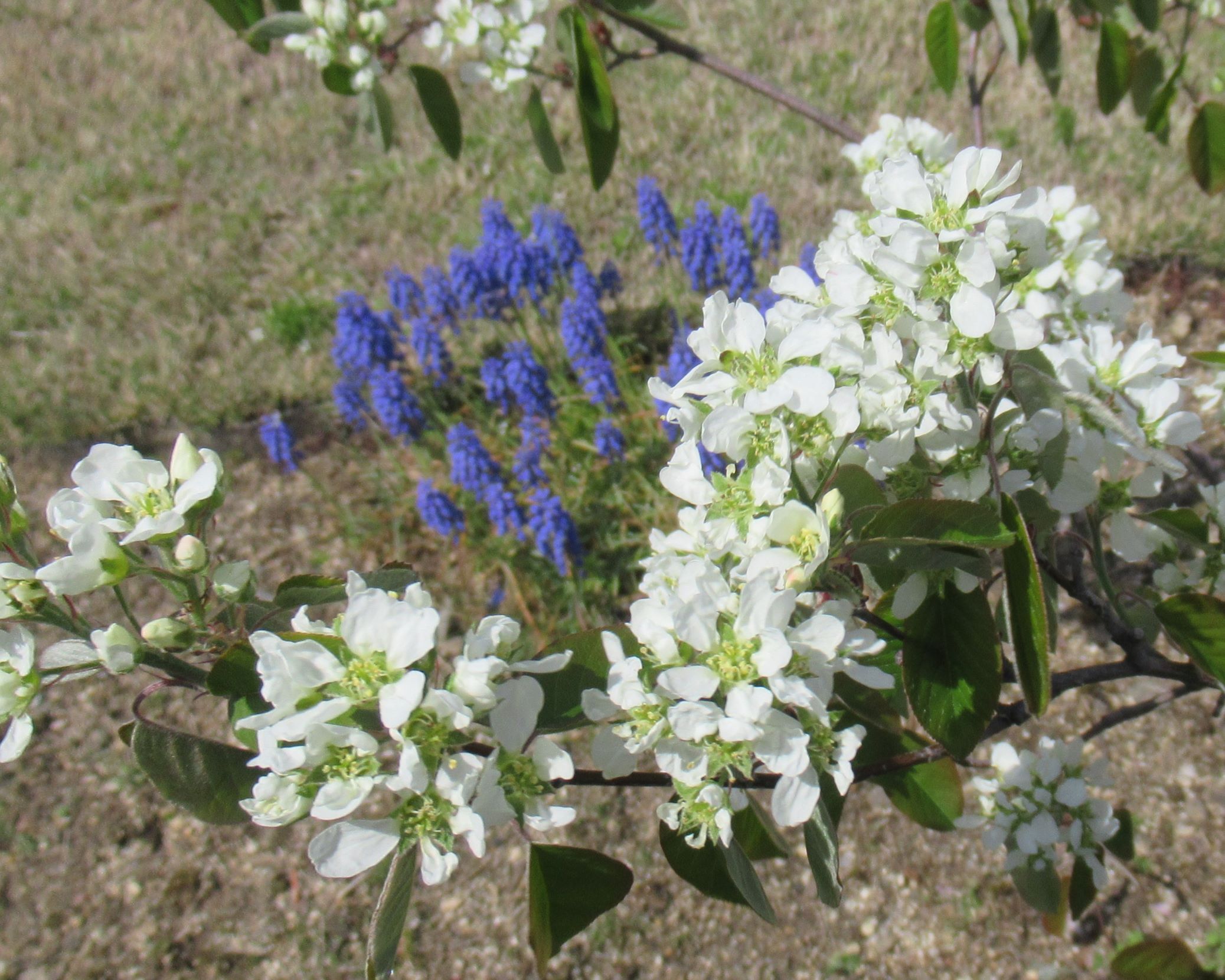 ジューンベリー・ラマルキー「ナチュラルな雰囲気が素敵。自然な細い枝・白い小花が心を優しく撫でる。 実も優しい甘みで美味しく、数個まとめて口に入れるのがオススメ! その木らしさを活かす剪定で、素敵な木姿になってきましたね。」2025.4