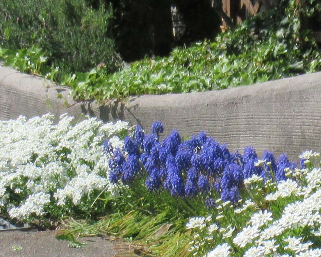 イベリスとムスカリ「お客様が植栽したコーナーもご紹介。シンプルなコーディネートが大人な感じ。素敵です!」2025.4