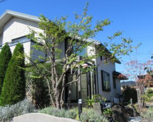 エゴノキ「この木も剪定で形を変えてきた。型にはめない、‘‘らしさ‘‘を大事にした剪定。 新築の時に植えたであろうエゴノキ。幹の太さからお客様宅の歴史を感じる。そういう木がある家は素敵だなぁ。」2025.10