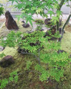 この庭のように、狭い場所でもイロハモミジを楽しみたい時は、この時期の剪定が有効です。