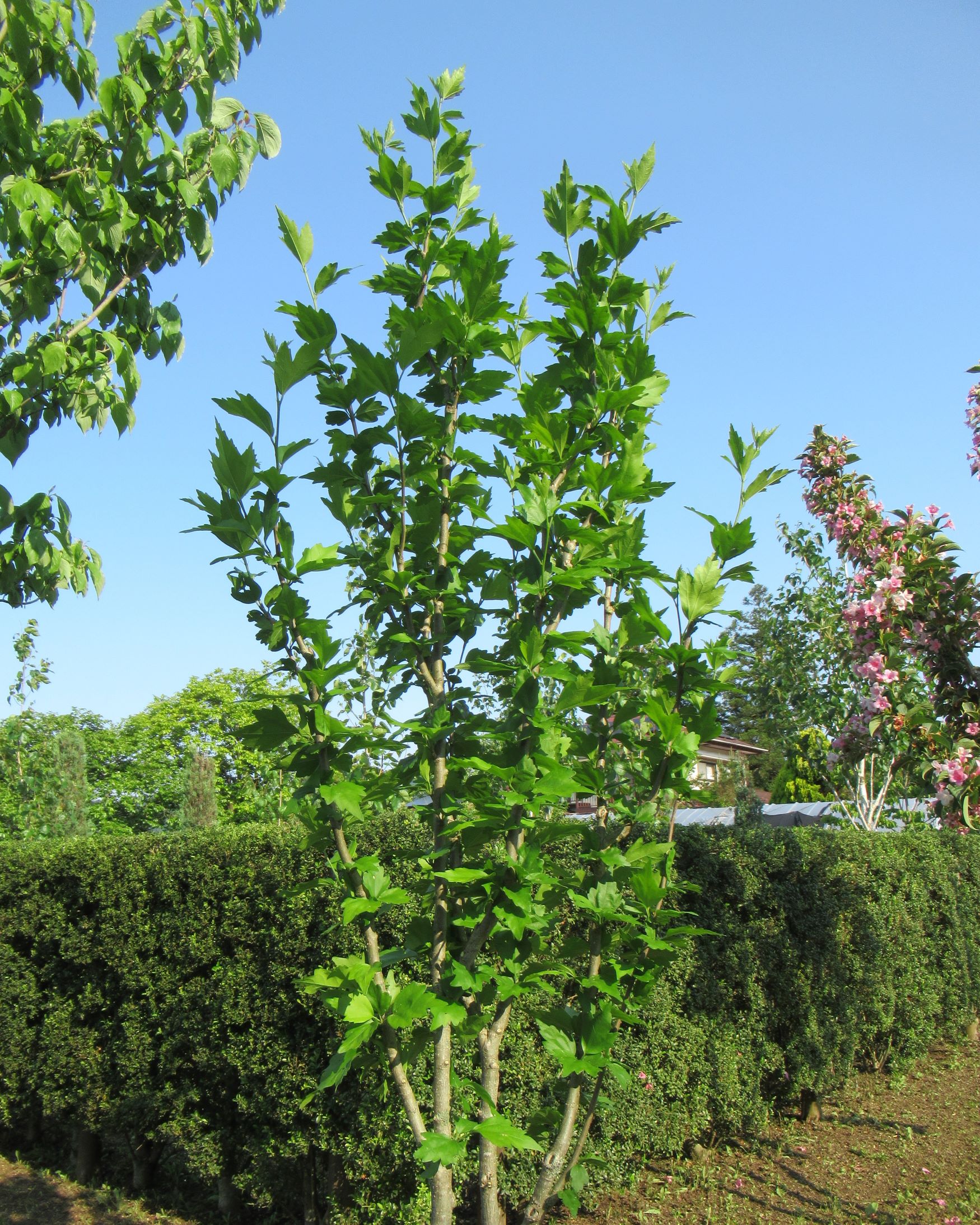 「5月28日、朝5時からキンメツゲの生垣を刈込鋏で剪定。今日で3日目。早朝だけの作業なので、数日かかる予定。そろそろ刈込み剪定が始まる時期なので、いい練習になって良い。 しかし動けば腹がへる。おやつにパンを1個食べてお客様宅へ向かう。」