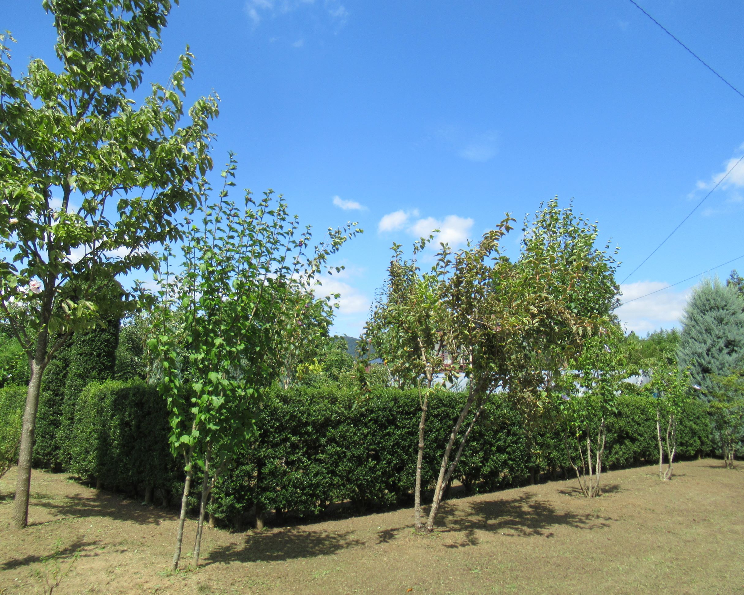 「キンメツゲの生垣の剪定も2回目を予定。」