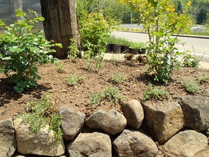 庭壱(にわいち)事務所の庭の土留め石積みをご紹介します。