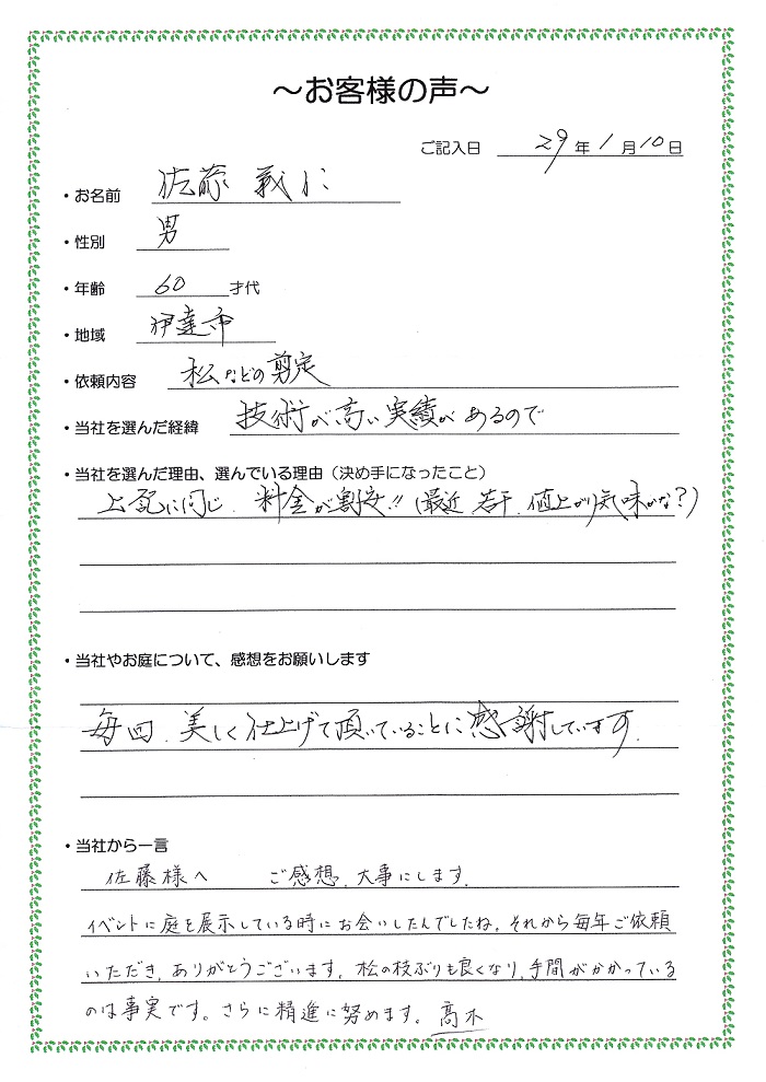 松の剪定を依頼 「技術が高い、実績がある」 |
